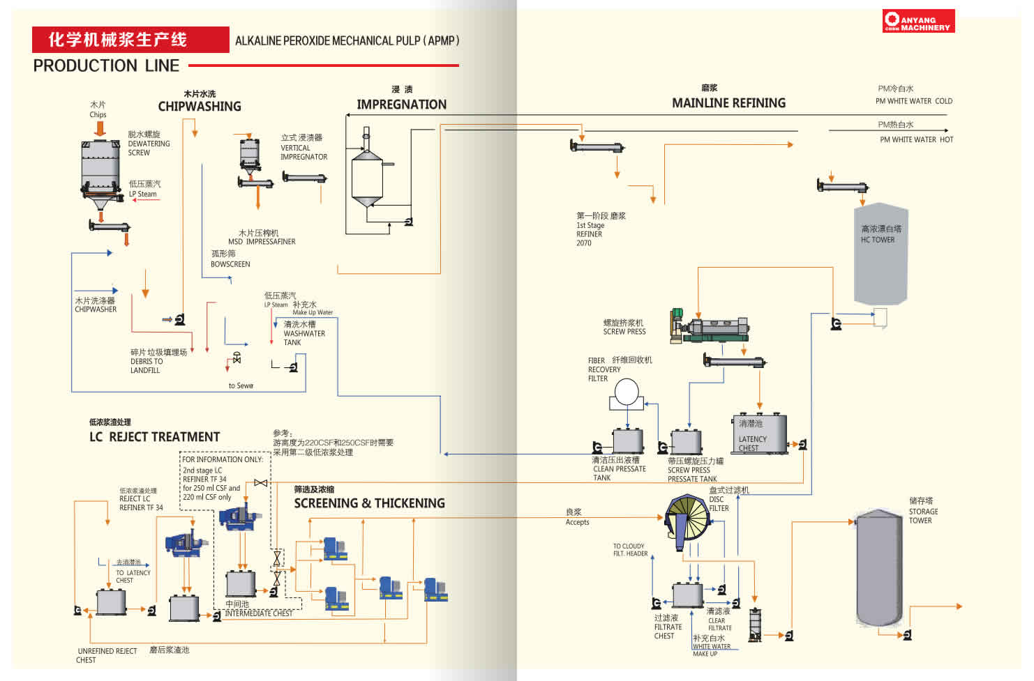 APMP紙漿工藝主要特征包括色漿高度潔白、產(chǎn)量高、使用化學(xué)品、低污染等,其是一個(gè)高產(chǎn)紙漿新工藝。漂白過(guò)程中使用化學(xué)品和藥物較少,APMP紙漿與化學(xué)紙漿(其產(chǎn)生大量黑液)不同,因此,該APMP工藝對(duì)環(huán)境無(wú)污染。