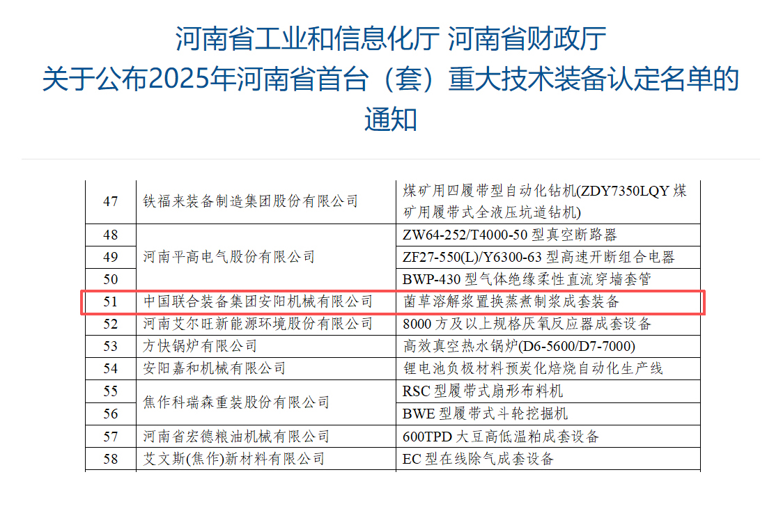 近日,河南省工業(yè)和信息化廳正式公布2025年河南省首臺(tái)(套)重大技術(shù)裝備認(rèn)定結(jié)果,中國聯(lián)合裝備集團(tuán)安陽機(jī)械有限公司(以下簡稱“安陽機(jī)械”)自主研發(fā)的菌草溶解漿置換蒸煮制漿成套裝備成功入選。這一認(rèn)定不僅是對(duì)安陽機(jī)械技術(shù)實(shí)力的高度認(rèn)可,更標(biāo)志著我國在非木漿制漿裝備領(lǐng)域?qū)崿F(xiàn)重大技術(shù)突破——成功破解溶解漿原料“卡脖子”難題,為綠色制漿產(chǎn)業(yè)的革命升級(jí)注入強(qiáng)勁動(dòng)力。作為造紙及生物質(zhì)材料產(chǎn)業(yè)的核心裝備,該成套裝備實(shí)現(xiàn)了從“以草代木”到“高效低碳”的裝備革命,開啟行業(yè)發(fā)展新征程。