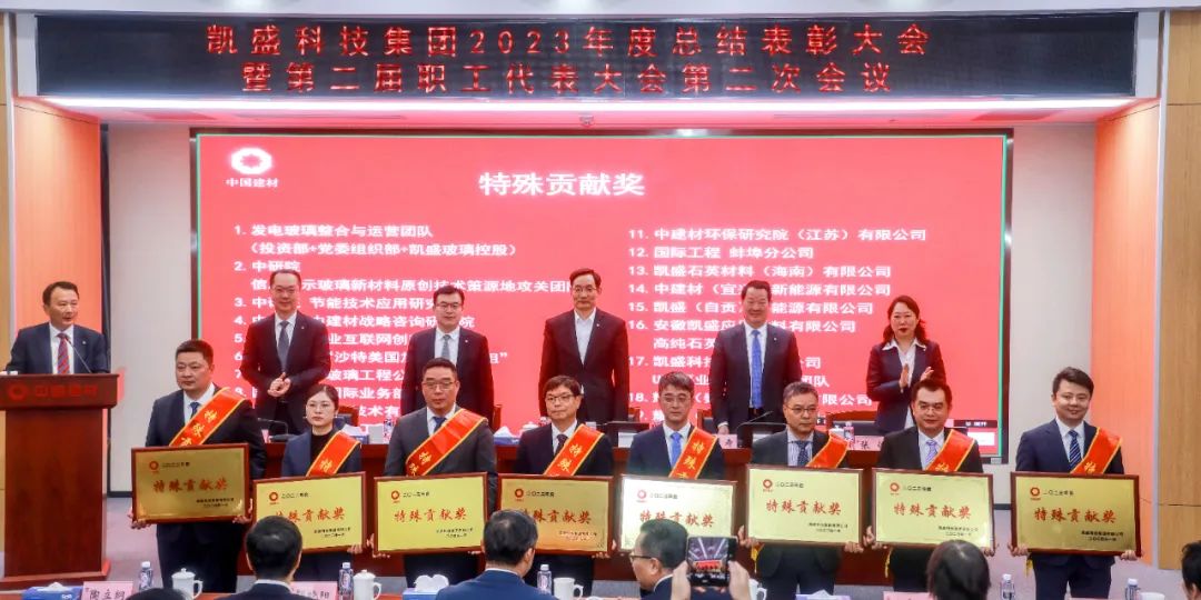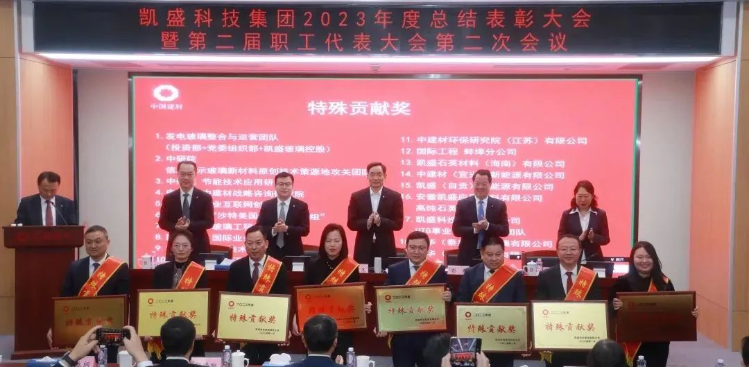 會上,凱盛科技集團(tuán)黨委副書記陶立綱宣讀了2023年度表彰名單,并主持頒獎。凱盛科技集團(tuán)副總經(jīng)理王叢笑宣讀了2023年度科技類獲獎情況。會議表彰了凱盛科技集團(tuán)2023年度卓越貢獻(xiàn)獎、特殊貢獻(xiàn)獎、先進(jìn)單位、先進(jìn)集體、勞動模范、先進(jìn)工作者。